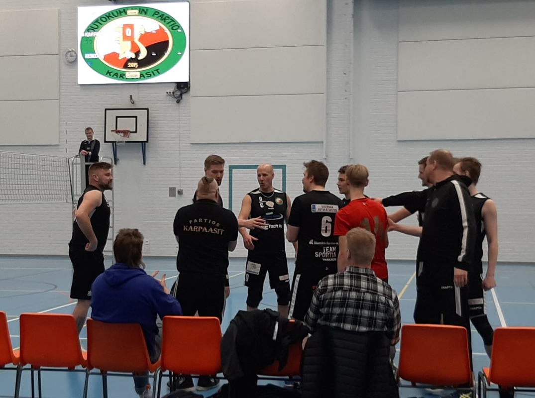 Maansiirto E. Huttunen Oy tarjosi lentopallon ystäville maksuttoman mahdollisuuden päästä seuraamaan miesten 2-sarjan ylempää jatkosarjaa Outokummun urheilutalossa 18.2. Ottelu lisämausteineen houkutteli lehtereille peräti 240 katsojaa. Karpaasit - Kisko 3-0 Outokummun Partion Karpaasien viimeinen ylemmän jatkosarjan kotiottelu Oulun Kiskoa vastaan kulki tutulla kaavalla. Karpaasit voitti ottelun erin 3-0 (25-18, 25-18, 25-21). Karpaasit on voittanut kaikki tämän kauden pelit ja varmisti voitolla pääsyn suoraan neljännesvälieriin, jotka pelataa 24.-25.3. Ennen näitä pelejä Karpaasit tekee kaksoispelimatkan Kalajoelle ja Jyväskylään, mutta näiden pelien lopputuloksilla ei ole vaikutusta jatkopelien aikatauluun. 240 katsojaa juhli Jarin synttäreitä Maansiirto E.Huttusen isännöimässä ilmaispelissä oli katsojia 240 lentopallojännäriä, jotka pääsivät viettämään juhlahetkeä ottelun alussa. Maanantaina 50-vuotispäivää viettänyt Karpaasien joukkueenjohtaja Jari Hiltunen yllätettiin nykyisten ja entisten pelaajien toimesta pienellä juhlahetkellä. Jari sai juhlapaidan ja hänet "komenettiin" yllättäen aloituskuusikkoon ja aloitussyöttäjäksi. Taidot olivat tallella ja pallot lensivät komeasti vastapuolelle. Kun verkolla pelanneet pelaajat onnistuivat tekemään niistä kaksi pistettä, niin valmentaja Jarno Koponen suoritti vaihdon ja Jari pääsi vaihtopenkille joukkueenjohtajan tehtävään. Ottelun jälkeen Jari palkittiin joukkueesta ykköspalkinnolla ja hän sai lisäksi lahjaksi kellon, kävelykepin ja knallin. Karpaasien kymmenvuotisen toimintavuoden ajan Jari on hoitanut ansiokkaasti joukkueenjohtajan ja taloudenhoitajan tehtäviä sekä tehnyt hyviä pelaajasopimuksia. Tikka onnistui passipelissään Kun juhlamuodollisuudet olivat ohi, Karpaasit pääsi hyvin pelikuvioihin kiinni. Kisko ei löytänyt keinoja Karpaasien kukistamiseksi. Passari Tuomas Tikan ja libero Iivo Hirvosen yhteispeli toimi. Tikka jakeli palloja taitavasti ja vieraiden torjunta ei pystynyt pysättämään iskuvoimisia pelaajia. Karpaasien parhaat pistenikkarit olivat Ville Louhela (16), Teemu Saarinen (10), Jani Hassinen (7) ja Tuomas Tikka (5). Kiskon parhaana pelaajana palkittu Juho Lämsä oli joukkueen paras pistemies, kun hänelle kirjattiin 10 pistettä. Valmentaja Jarno Koponen:" Peruspelillä varmistimme kolme sarjapistettä suoraan kolmessa erässä. Olemme pelanneet tähän mennessä hyvän kauden, kun saldona on 14 voitokasta ottelua( erät 42-8). Kiitos uskollisille kannattjille, kun jaksatte antaa tukea pelaajille otteluissa. Jatkopeleihin tarvitsemme lisää äänekästä yleisöä." Ottelun tuomitsivat joensuulaiset Loek Schreurs ja Ilpo Hiltunen. Markku Laitinen Ottelun tilastoihin pääsee tästä linkistä : Karpaasit – Oulun Kisko (Miesten 2-sarja) (lentopallo.fi) |